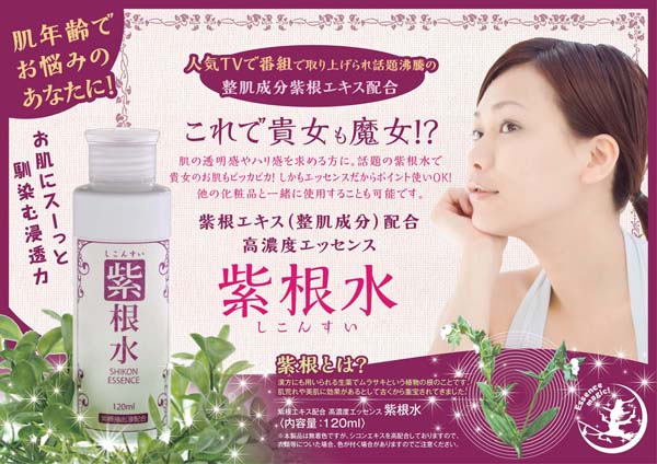 TVで紫根という素材を知り、「火傷の薬になっている原料で化粧品を作ったら、顔のシミが取れ若返った」と言ってたので