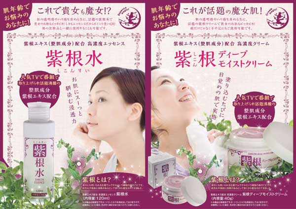 TVで紫根という素材を知り、「火傷の薬になっている原料で化粧品を作ったら、顔のシミが取れ若返った」と言ってたので